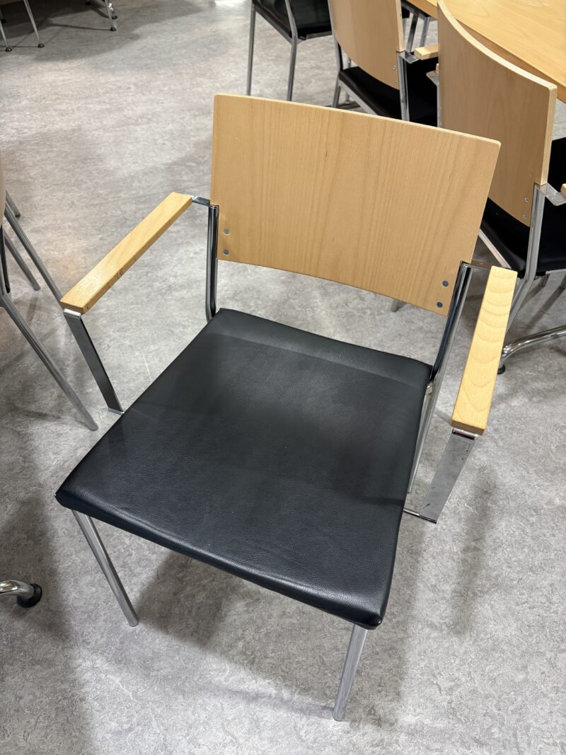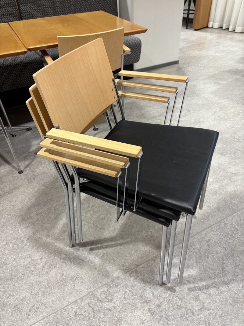 • Mustat käsinojalliset ja pinottavat Isku-merkkiset tuolit 61 kpl