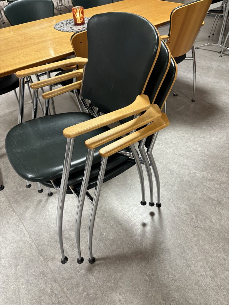 - Tummanvihreät käsinojalliset ja pinottavat tuolit 133 kpl